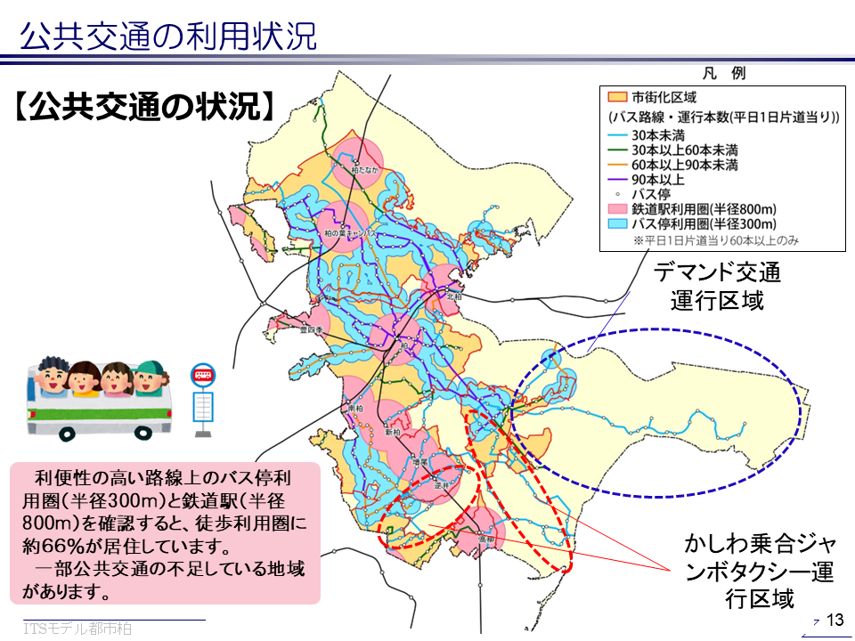 - ●柏市の公共交通課題の整理を踏まえた回遊性向上に向けた次の取組について、国プロへの応募を視野に入れつつ、実現に向けた検討を進める。